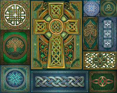 Timeless patterns, endless detail. The Springbok 500 Piece Celtic Knots Jigsaw Puzzle for Adults showcases intricate interwoven knotwork inspired by traditional Celtic design. Braided loops and flowing lines overlap in rich shades of green, gold, and earthy tones. Symmetry draws the eye. Fine detail invites focus. The repeating patterns create a calming, visually striking image that rewards careful assembly. A full-size poster is included to guide the experience.