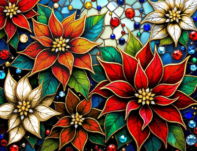 Celebrate the season with this vibrant poinsettia puzzle inspired by stained glass art. This 1000 piece puzzle is a beautiful, intricate challenge for flower and Christmas decor lovers alike.
